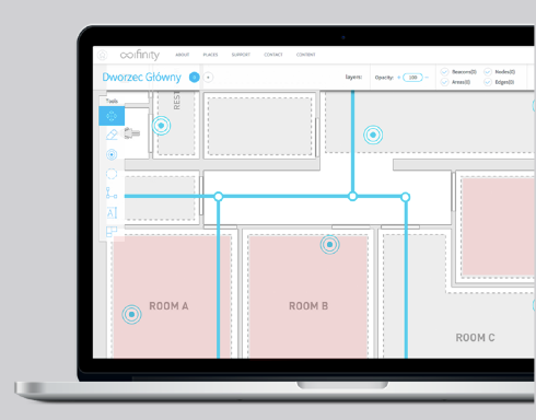 How often do students and visitors feel lost on your campus? Wouldn’t it be easier to have a virtual map of the building, which will point you to the right place from your current location? Thanks to Ifinity Beacons it is now possible. The system automatically recognizes the direction in which you are going and the floor that you are currently on. By choosing the faculty which you need to go to or the office which you need to visit the application will plan the route to your desired location from the exact place where you currently are.